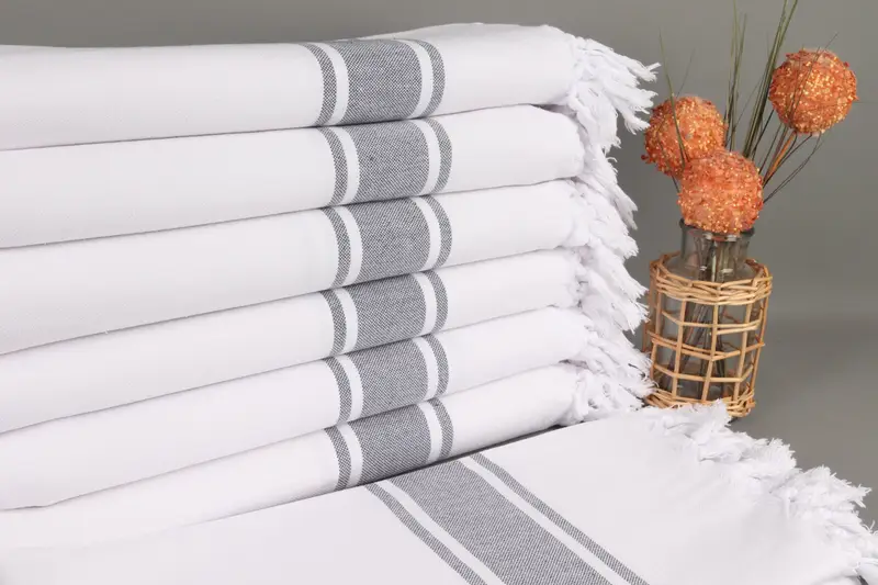 Türk Havlusu Plaj, Beyaz-Lacivert Çizgili Organik Pamuk, 40x71 İnç