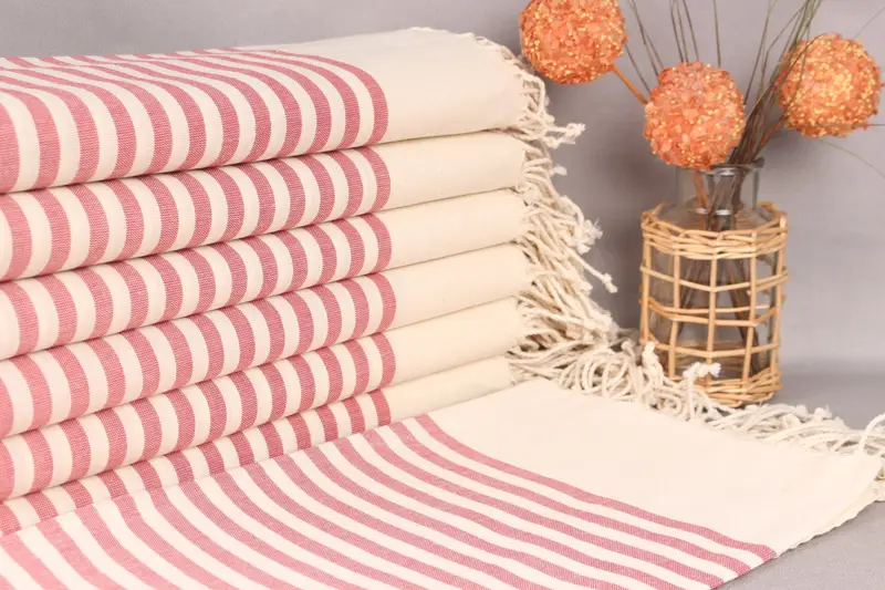 Kişiye Özel Kırmızı Çizgili Türk Havlusu, Organik Pamuk, 40x71 İnç