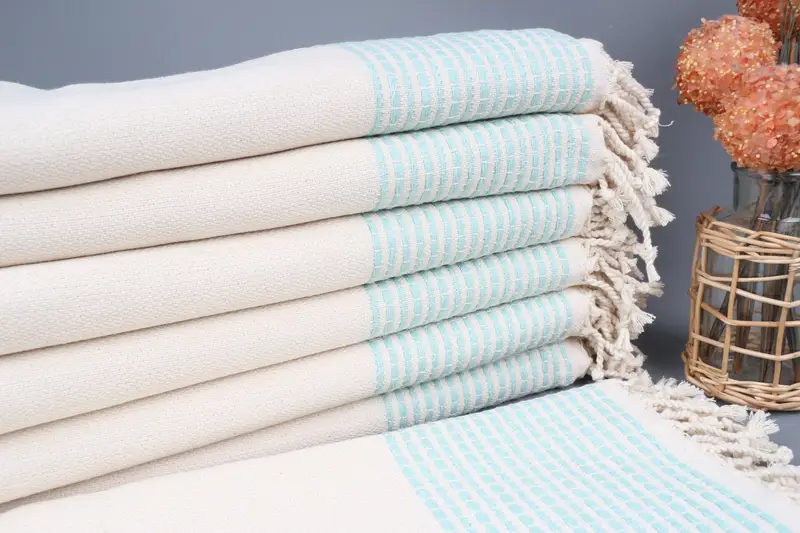 Nakışlı Plaj Havlusu Nane Çizgili Organik Pamuk, 36x69 İnç