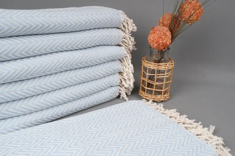 Kişiye Özel Türk Pamuk Havlu Bebek Mavisi Chevron 40x71 İnç