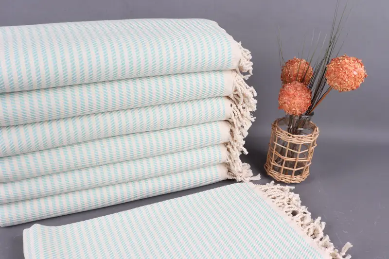 Türk Plaj Havlusu Organik Pamuk Puantiyeli Nane, 40x71 İnç
