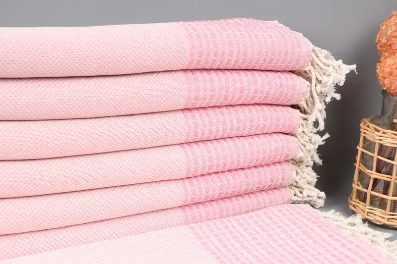 Kişiye Özel Plaj Havlusu Pembe Çizgili Organik Pamuk, 36x69 İnç