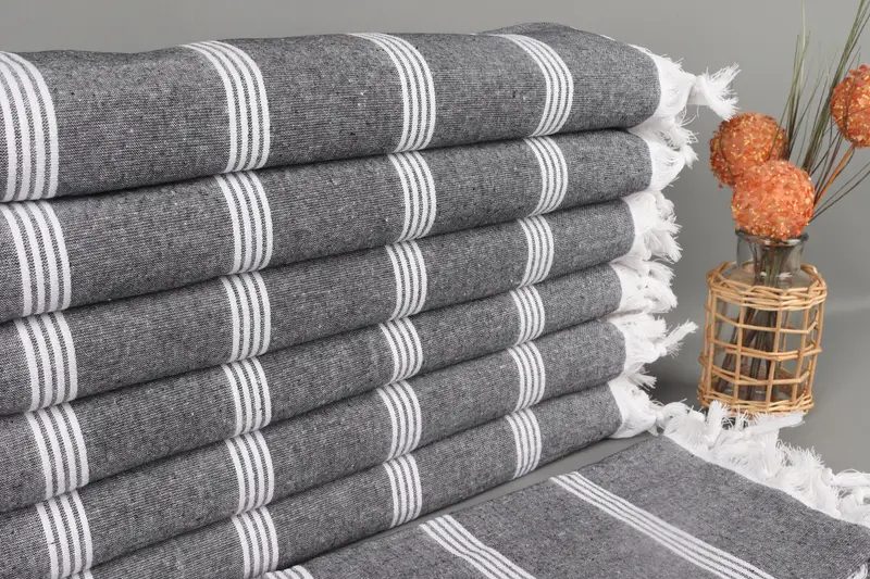 Türk Plaj Havlusu Siyah Organik Pamuk, Çizgili, 30x69 İnç