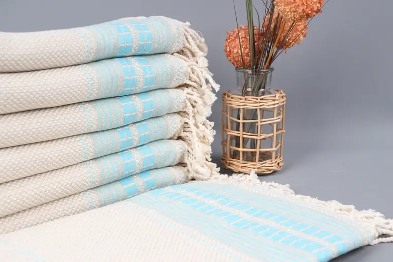 Plaj Havlusu Monogramlı Türk Pamuğu Turkuaz, 38x65 İnç