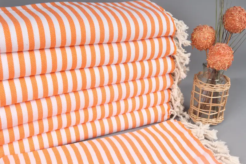Türk Plaj Havlusu Organik Pamuk Turuncu Çizgili, 40x76 İnç
