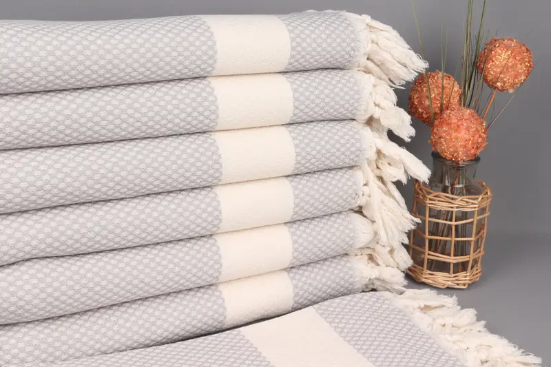 Kişiye Özel İşlemeli Açık Gri Chevron Plaj Havlusu, 36x67 İnç