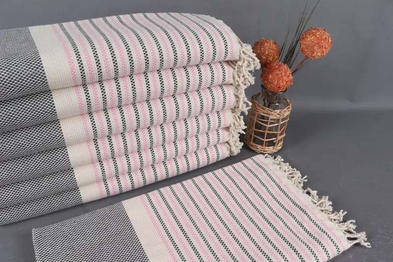 Pembe-Gri Peştemal Geometrik Havlu Organik Pamuk, 40x71 İnç