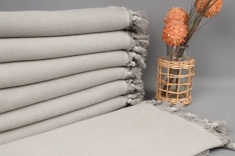 Özel Plaj Havlusu Kişiye Özel Türk Pamuğu Gri Balıksırtı, 40x63 İnç