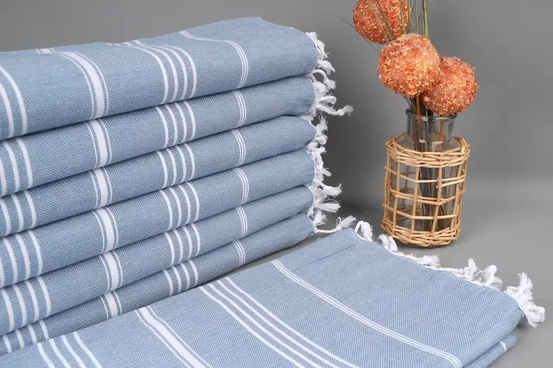 Kişiye Özel Monogram Petrol Mavi Çizgili Türk Havlusu, 40x71 İnç