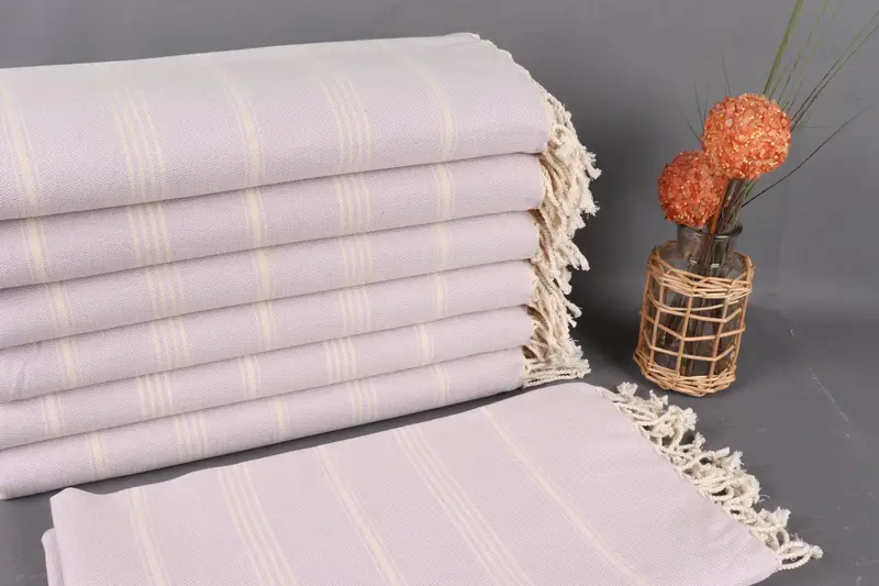 Türk Plaj Havlusu Organik Pamuk Lila Çizgili, 40x67 İnç