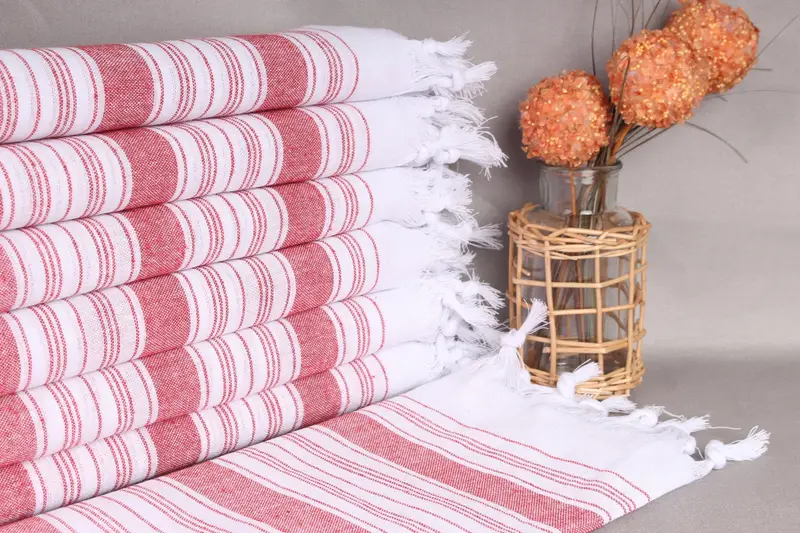 Özel Kırmızı Pamuk Havlu Peştemal, 32x67 İnç, Organik Pamuk İpliği