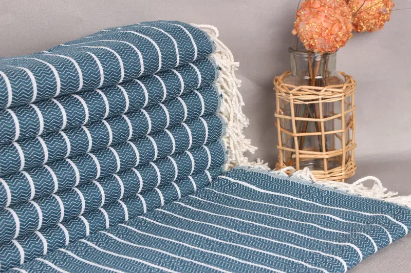 Kişiye Özel Plaj Havlusu Organik Pamuk Petrol Mavisi, 40x71 İnç