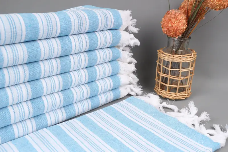 Türk Havlusu Plaj Çizgili Turkuaz, Organik Pamuk, 71x40 İnç