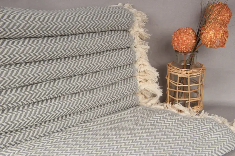 Noel Battaniyesi Toplu Koyu Gri Chevron Türk Plaj Havlusu, 40x71 İnç
