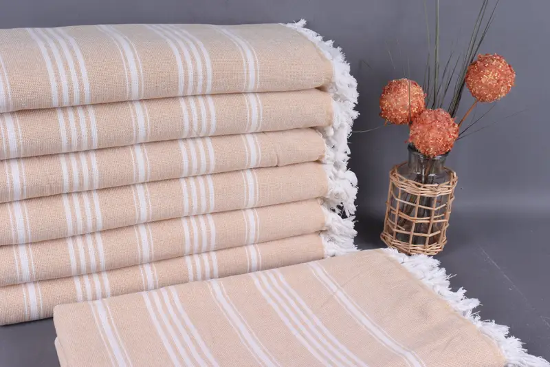 Düğün Hediyesi Havlular Organik Pamuk Hardal Çizgili, 40x71 İnç