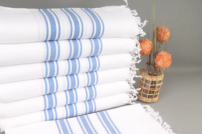 Kişiye Özel Türk Havlusu Mavi Çizgili, Organik Pamuk, 40x71 İnç