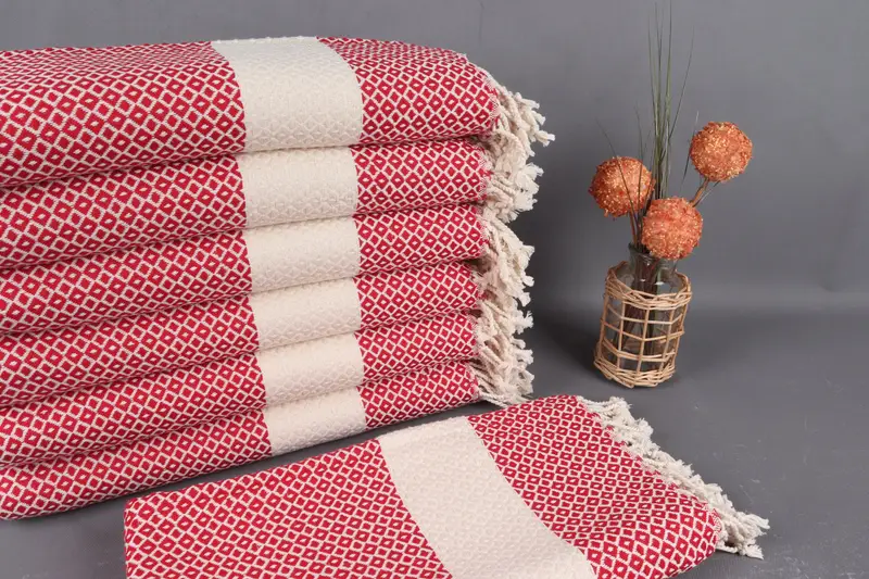 Türk Plaj Havlusu Kırmızı Organik Pamuk 40x71 İnç