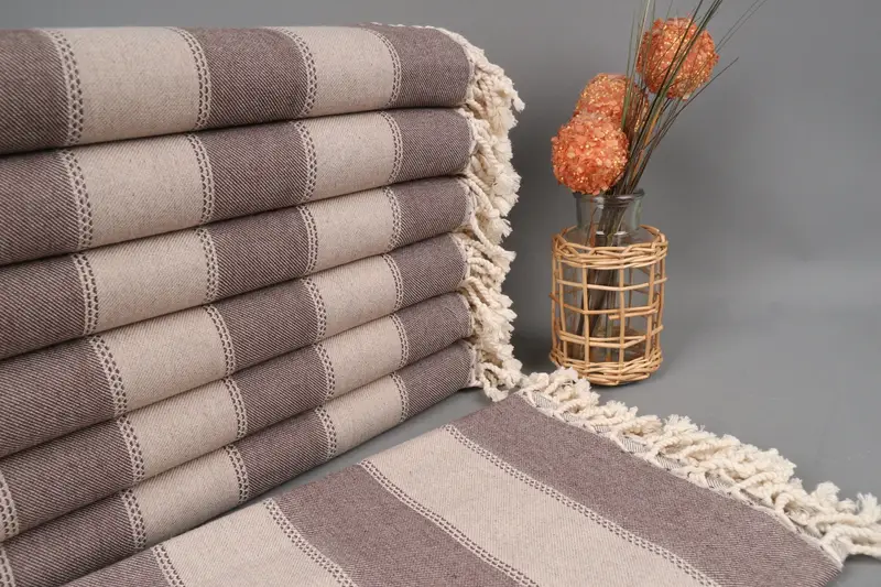 Türk Plaj Havlusu Kahve-Bej Çizgili, Organik Pamuk, 36x65 İnç