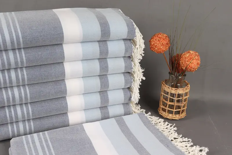 Türk Havlusu Lacivert-Bebek Mavisi Çizgili, Organik Pamuk, 40x75 İnç