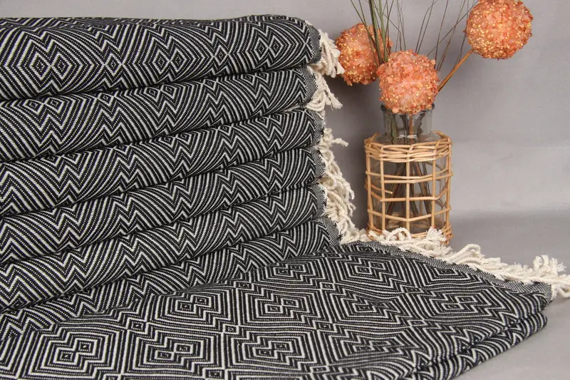 Düğün Hediyeleri Türk Havlusu Organik Pamuk Siyah Pırlanta, 40x75 İnç