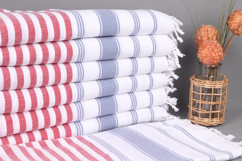 Türk Havlusu Plaj Kırmızı-Lacivert Çizgili, 40x71 İnç