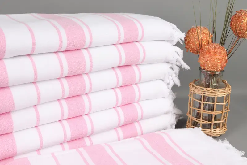 Türk Havlusu Kişiye Özel Pembe Çizgili Havlu, Organik Pamuk, 36x67 İnç