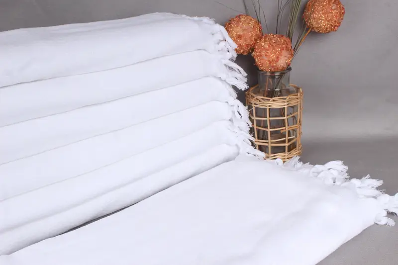 İşlemeli Plaj Havlusu Türk Pamuklu Beyaz Katı Havlu 35x36 İnç