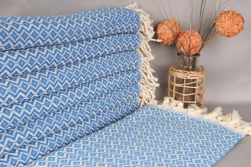 Türk Havlusu Organik Pamuk Petrol Mavisi, Baklava Desenli, 40x71 İnç
