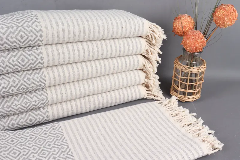 Türk Hamam Havlusu Kişiye Özel Açık Gri Diamond, 38x75 İnç