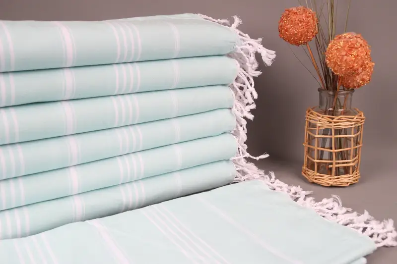 Türk Plaj Havlusu Kişiye Monogramlı Nane Çizgili, 40x71 İnç