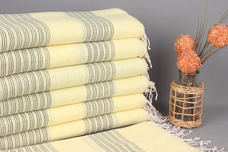 İşlemeli Plaj Havlusu Kişiye Özel Parlak Sarı-Siyah Çizgili, 38x71 İnç