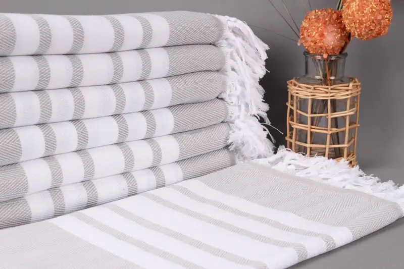 Türk Plaj Havlusu Kişiye Özel Açık Gri Chevron, 36x67 İnç