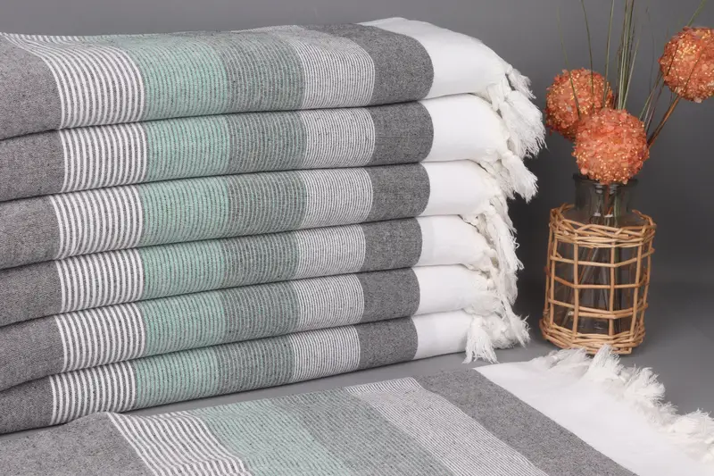 Kişiye Özel Türk Havlusu Siyah-Yeşil Çizgili, Organik Pamuk, 40x67 İnç