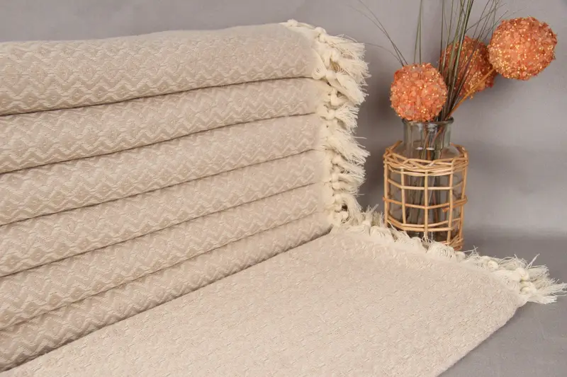 Kişiye Özel Türk Havlusu Açık Bej Elmas, Organik Pamuk, 40x71 İnç