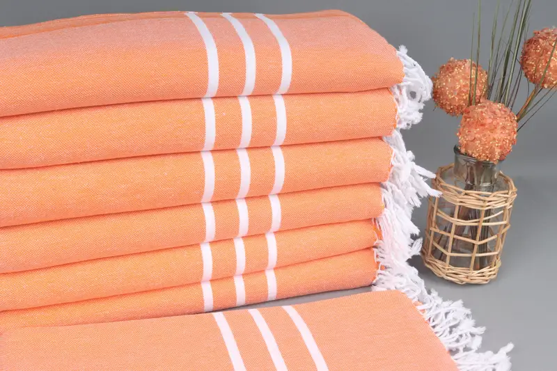 Organik Plaj Havlusu Çizgili Turuncu, Fouta Peştemal, 40x71 İnç