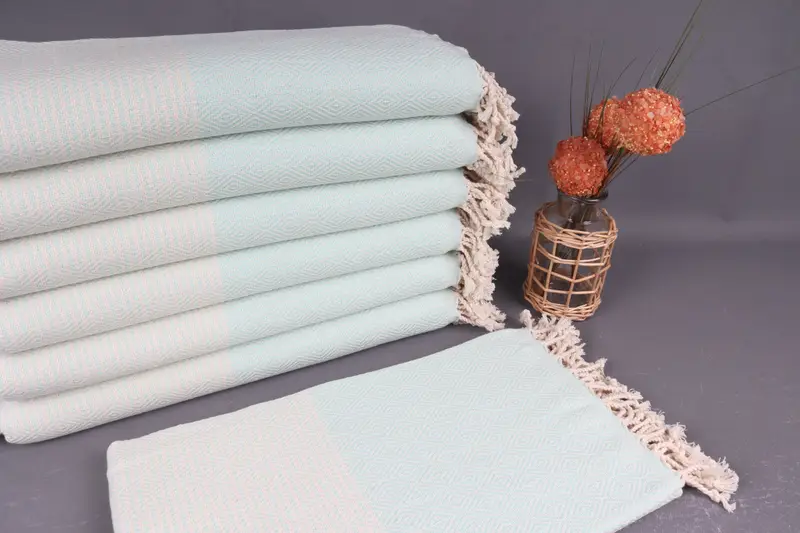 Türk Plaj Havlusu Organik Pamuk Nane Pırlanta Peştemal, 40x71 İnç