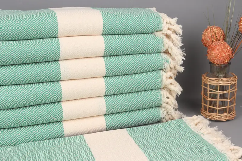 Türk Plaj Havlusu Kişiye Özel Benetton Green Diamond, 40x71 İnç