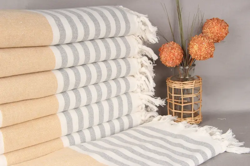 Monogramlı Türk Pamuk Hardal Çizgili Havlu, 36x67 İnç