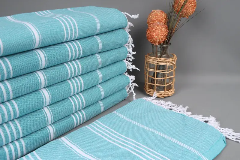Kişiye Özel Türk Havlusu Koyu Turkuaz Çizgili, Organik Pamuk, 40x71 İnç
