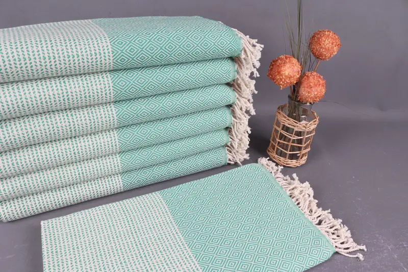Kişiye Özel Türk Havlusu Organik Pamuk Yeşil Pırlanta Peştemal, 40x71 İnç