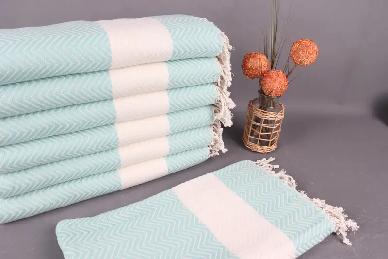 Kişiye Özel Türk Havlusu Mint-Beyaz Şerit, Organik Pamuk, 40x71 İnç