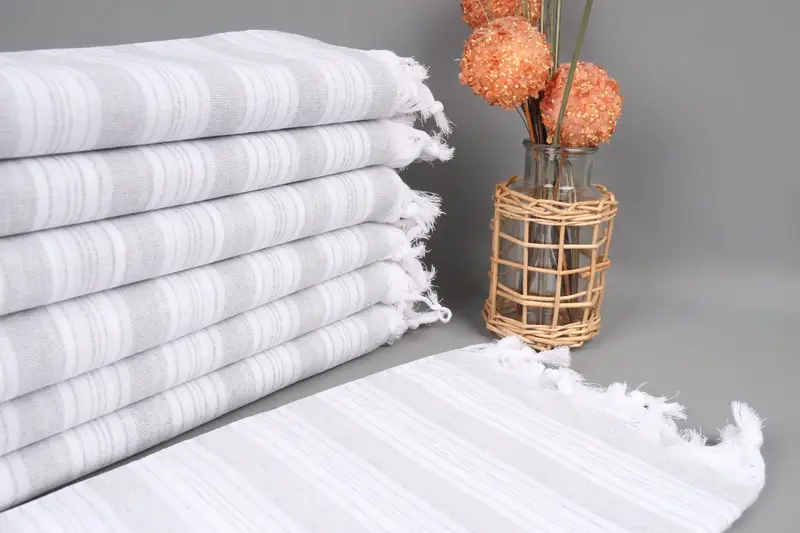 Kişiye Özel Açık Gri Çizgili Havlu, Organik Pamuk, 71x40 İnç