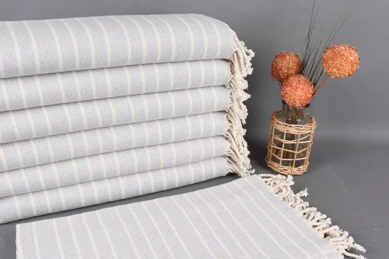 Türk Havlusu Kişiye Özel Açık Gri Çizgili Bambu, 40x75 İnç