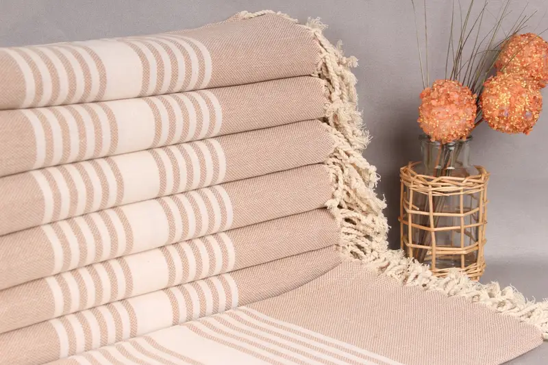Nedime Hediyesi Organik Pamuk Çizgili Kahverengi Havlu, 40x67 İnç