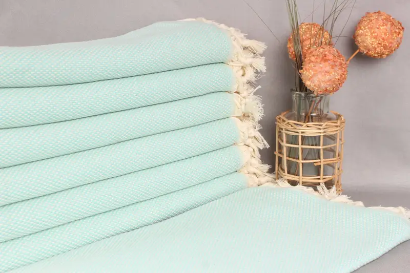 Kişiye Özel Türk Havlusu Organik Pamuk Nane Puantiyeli, 40x71 İnç