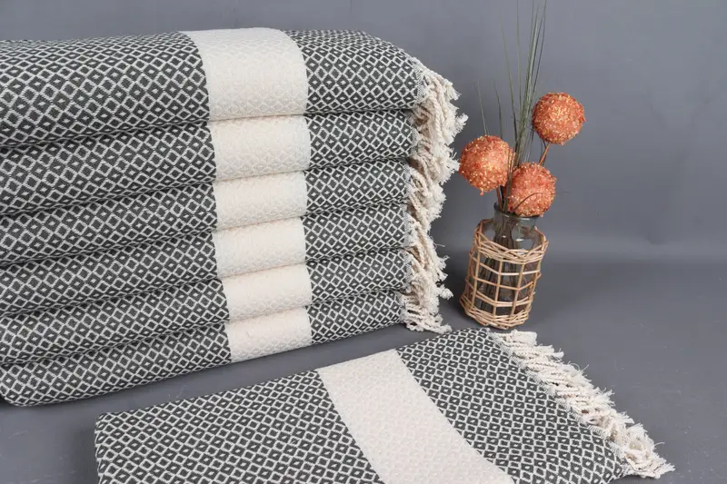 Organik Pamuk Plaj Havlusu Koyu Yeşil Baklava Desenli 40x71 İnç