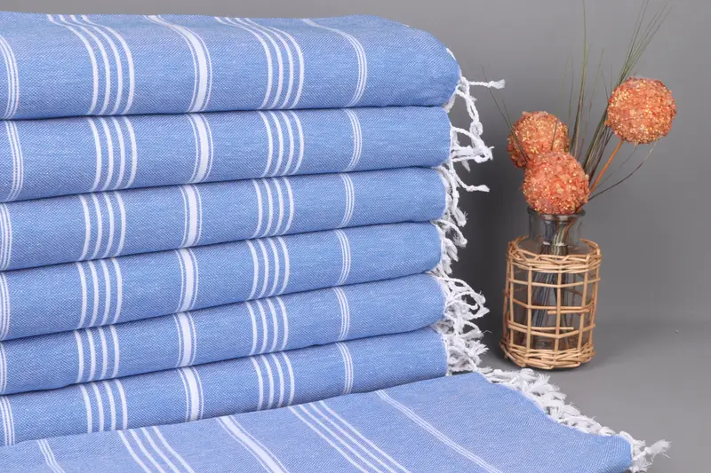 Kişiye Özel Saks Mavi Çizgili Türk Plaj Havlusu, 40x71 İnç