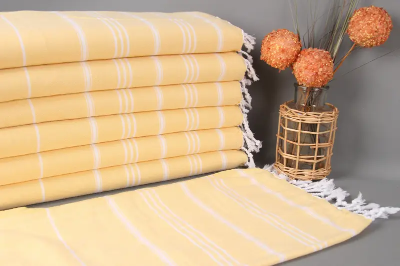 İşlemeli Bulaşık Havlusu Özel Sarı Çizgili, Organik Pamuk, 24x40 İnç