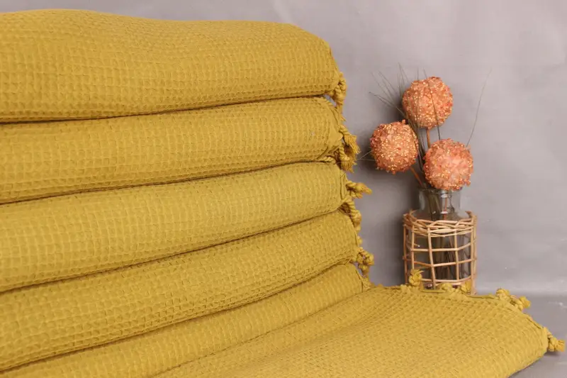 Türk Havlusu Plaj Kişiye Özel Hardal Pamuklu Battaniye, 67x91 İnç