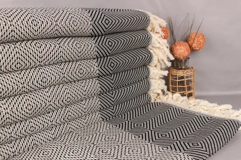 Kişiye Özel Plaj Havlusu Siyah Pamuklu Örtü, 79x91 İnç